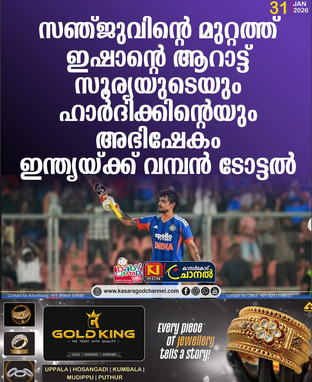 സഞ്ജുവിന്റെ മുറ്റത്ത് ഇഷാന്റെ ആറാട്ട്; സൂര്യയുടെയും ഹാര്ദിക്കിന്റെയും അഭിഷേകം; ഇന്ത്യയ്ക്ക് വമ്പന് ടോട്ടല്