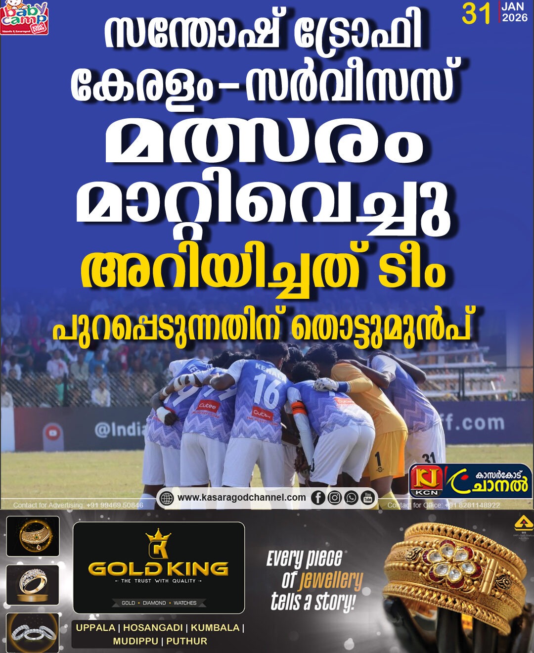 സന്തോഷ് ട്രോഫി: കേരളം-സര്വീസസ് മത്സരം മാറ്റിവെച്ചു, അറിയിച്ചത് ടീം പുറപ്പെടുന്നതിന് തൊട്ടുമുന്പ്