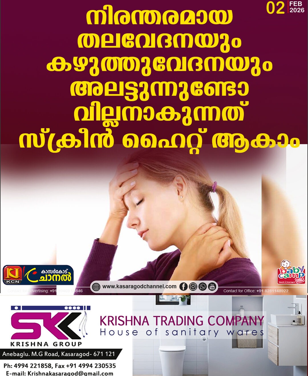 നിരന്തരമായ തലവേദനയും കഴുത്തുവേദനയും അലട്ടുന്നുണ്ടോ? വില്ലനാകുന്നത് സ്ക്രീന് ഹൈറ്റ് ആകാം! ഡോക്ടര് പറയുന്നു