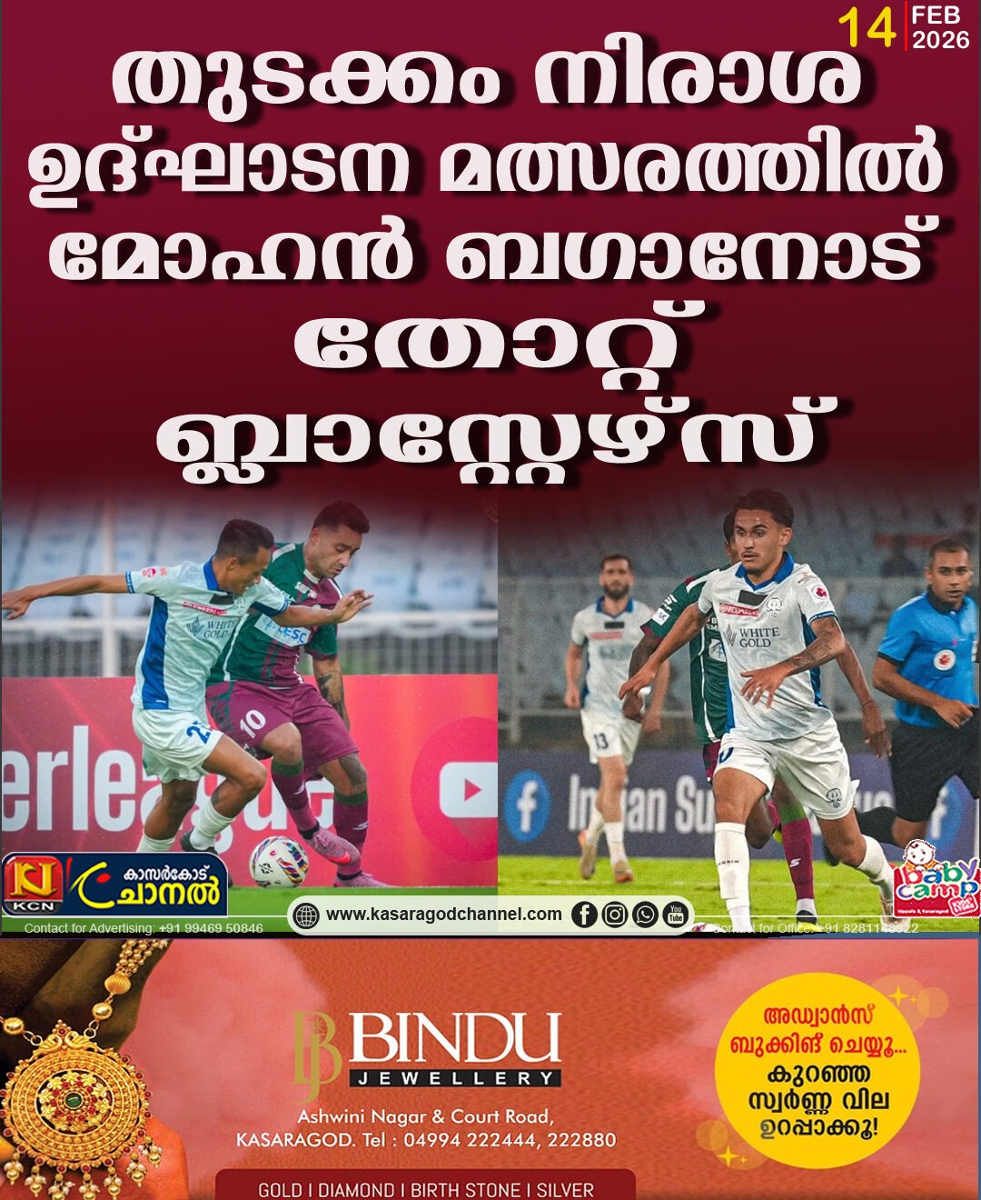 തുടക്കം നിരാശ; ഉദ്ഘാടന മത്സരത്തില് മോഹന് ബഗാനോട് തോറ്റ് ബ്ലാസ്റ്റേഴ്സ്