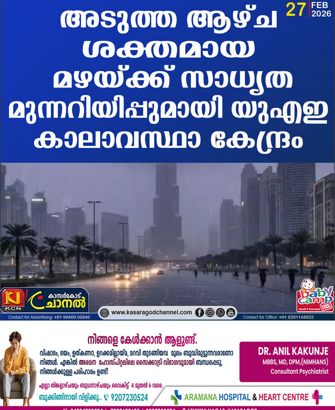 അടുത്ത ആഴ്ച ശക്തമായ മഴയ്ക്ക് സാധ്യത; മുന്നറിയിപ്പുമായി യുഎഇ കാലാവസ്ഥാ കേന്ദ്രം
