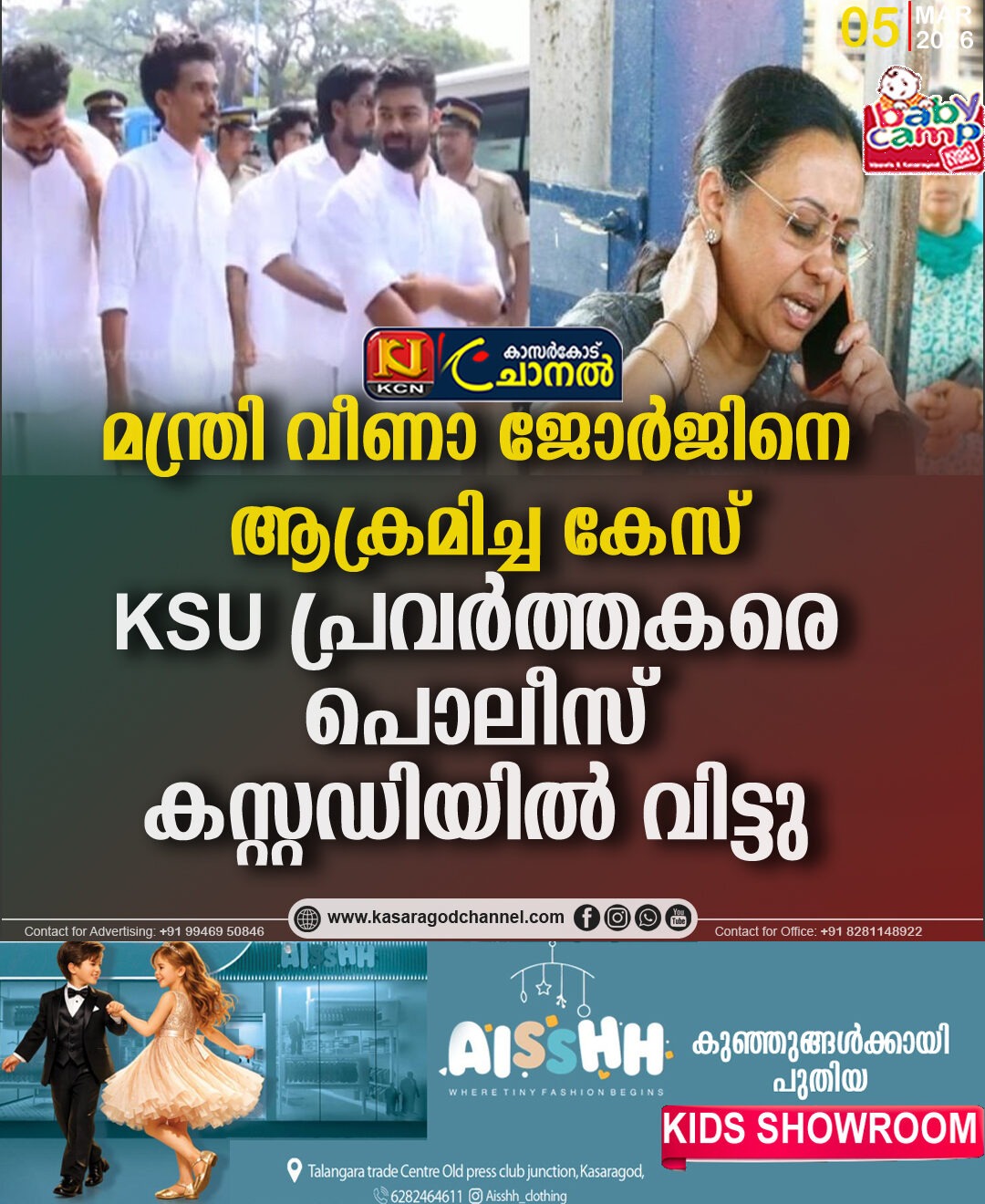 മന്ത്രി വീണാ ജോര്ജിനെ ആക്രമിച്ച കേസ്; KSU പ്രവര്ത്തകരെ പൊലീസ് കസ്റ്റഡിയില് വിട്ടു