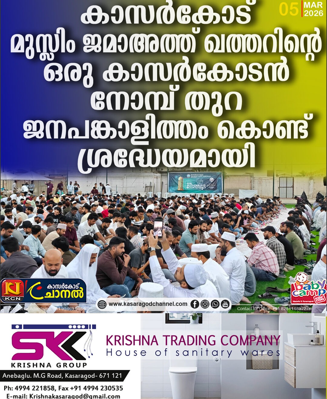 കാസര്കോട് മുസ്ലിം ജമാഅത്ത് ഖത്തറിന്റെ ഒരു കാസര്കോടന് നോമ്പ് തുറ ജനപങ്കാളിത്തം കൊണ്ട് ശ്രദ്ധേയമായി