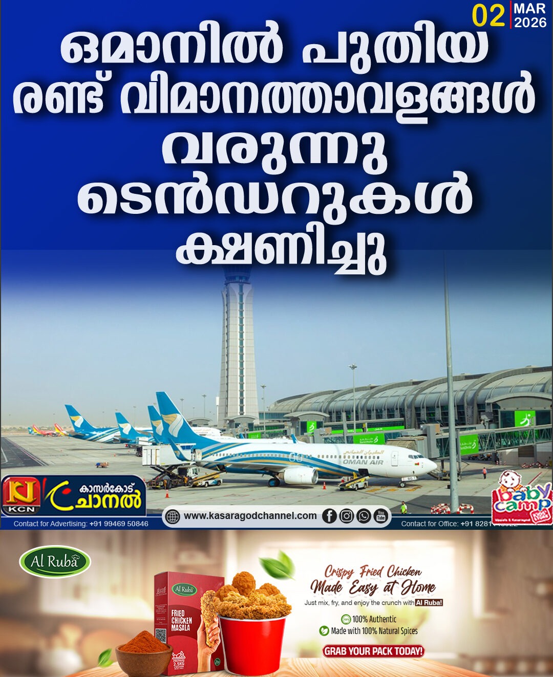 ഒമാനില് പുതിയ രണ്ട് വിമാനത്താവളങ്ങള് വരുന്നു; ടെന്ഡറുകള് ക്ഷണിച്ചു
