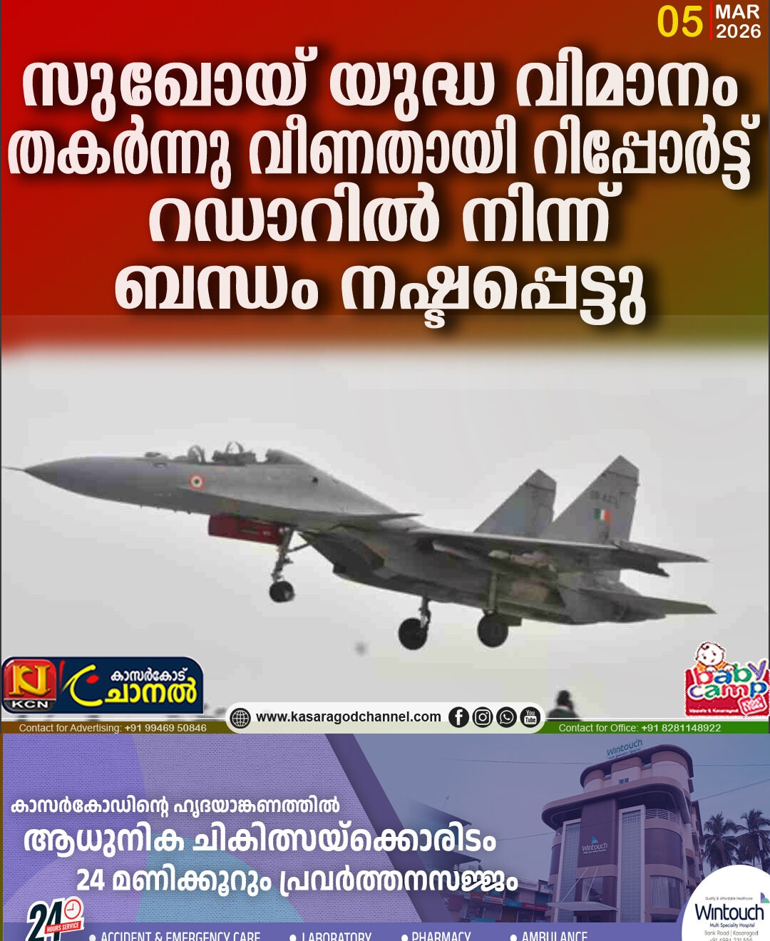 സുഖോയ് യുദ്ധ വിമാനം തകര്ന്നു വീണതായി റിപ്പോര്ട്ട്; റഡാറില് നിന്ന് ബന്ധം നഷ്ടപ്പെട്ടു